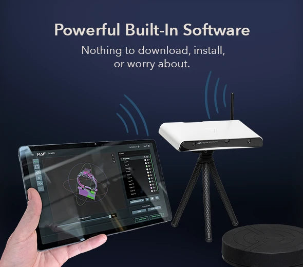 Unlike most scanners, THREE is a standalone, self-computing 3D scanner with built-in software that does all the scanning, processing and storage on the device itself. This means it can work with any computer, Chromebook, iPad or tablet.